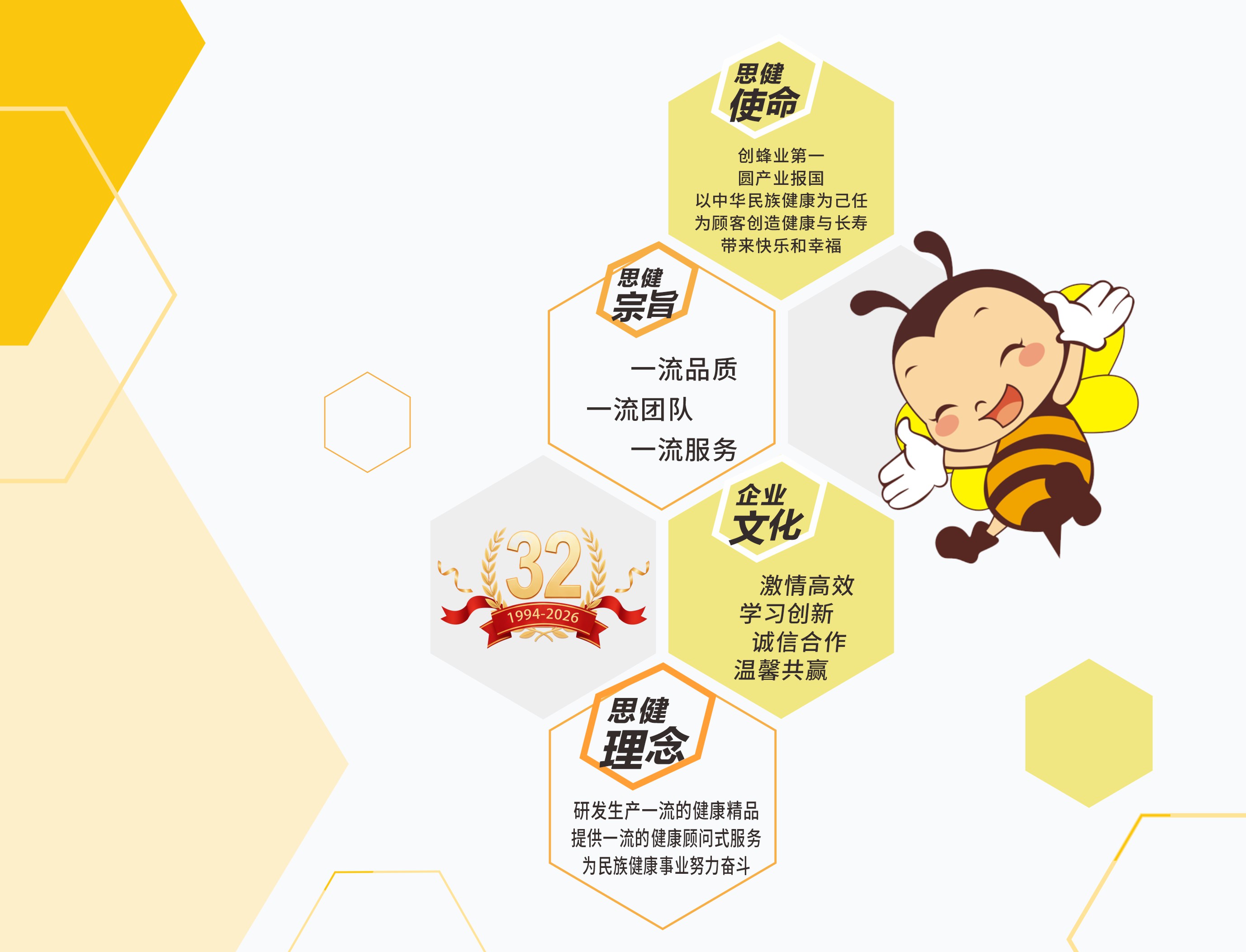 创蜂业第一,圆产业报国,以中华民族健康为己任,为顾客创造健康与长寿带来快乐和幸福!