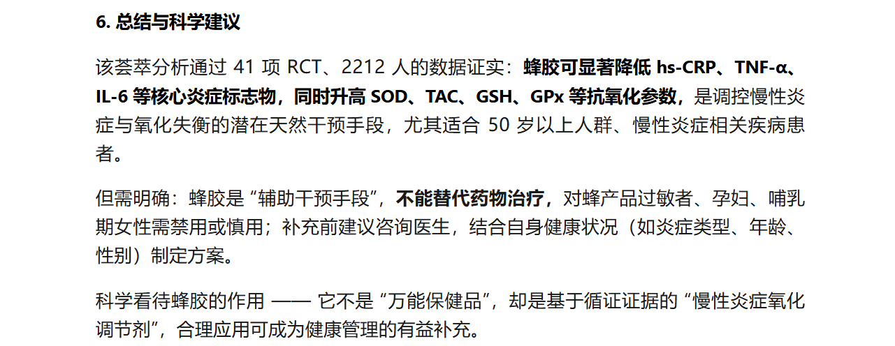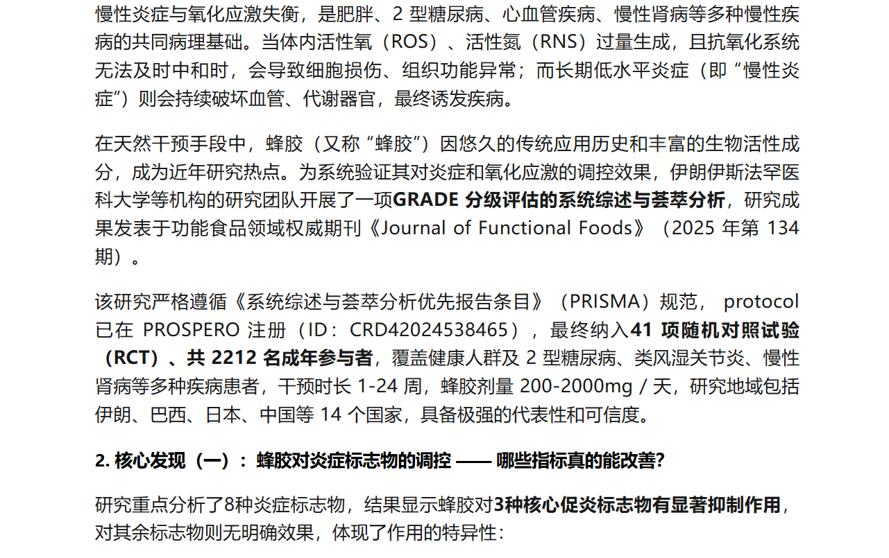 蜂胶与炎症、氧化应激:基于 41 项临床试验的权威科普解析