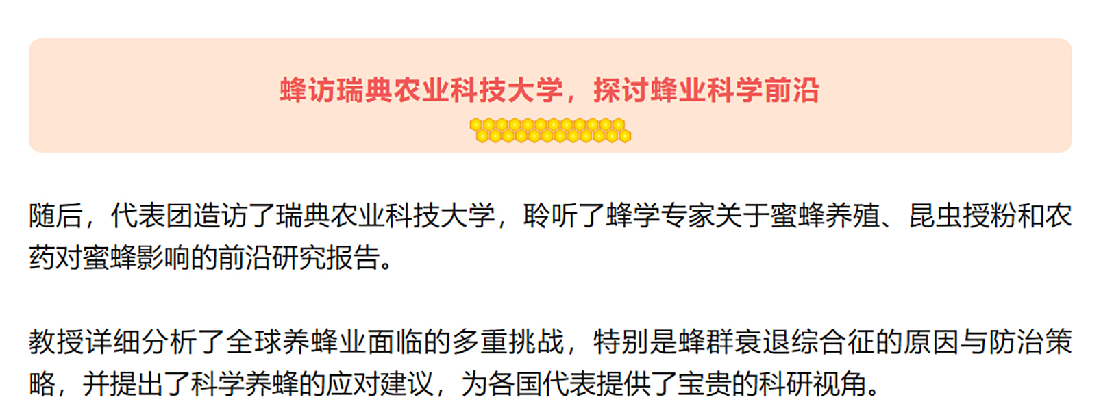 中国蜂协副会长、思健蜂业颜鉴翔董事长蜂访瑞典养蜂世家、大学,探秘北欧蜂业百年传承